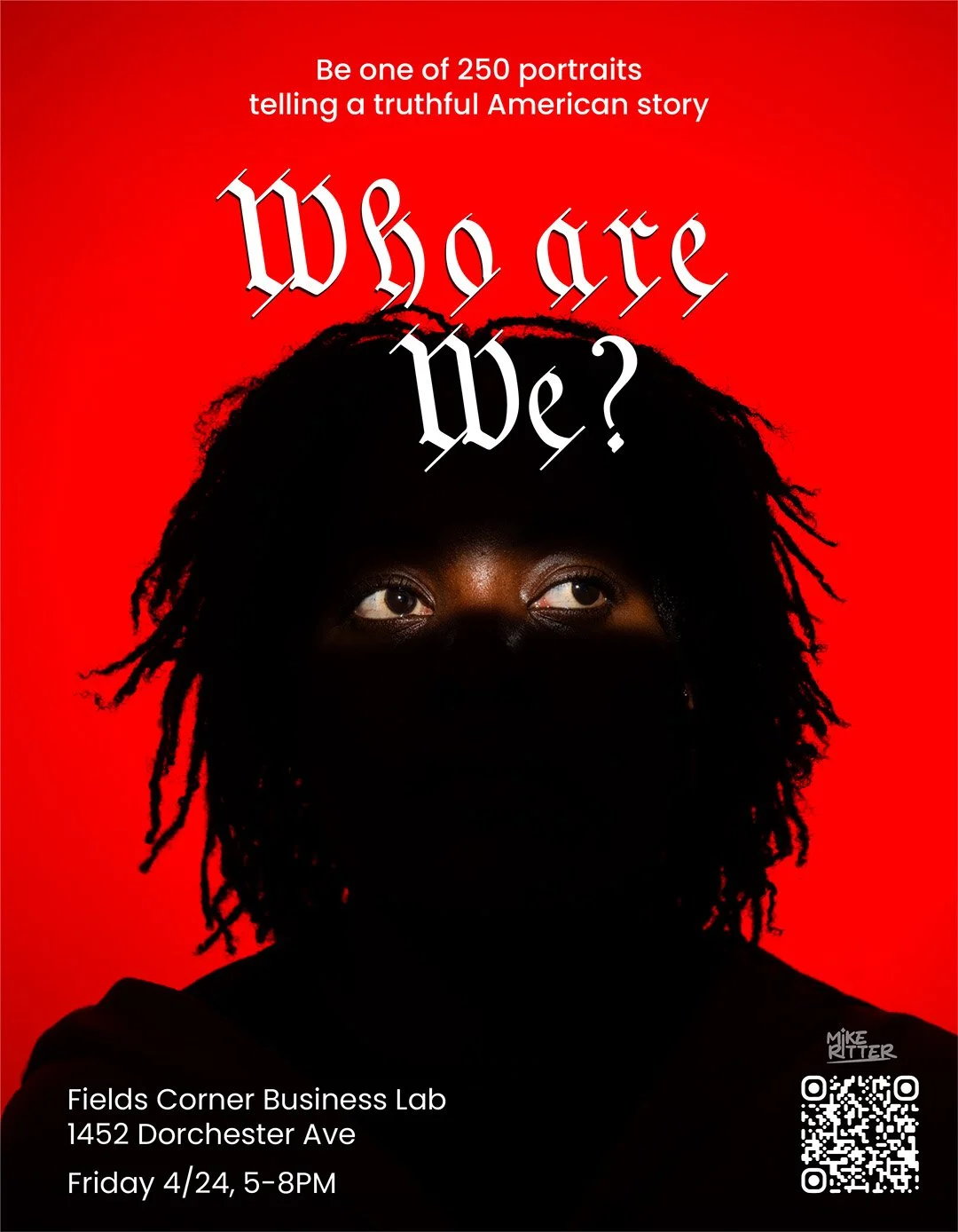 I’m seeking citizens and immigrants representing diversity across race, age, gender, and political beliefs. I will not collect identifiable information on anyone who participates. If you’re interested and/or know of organizations that could help connect me with possible portrait subjects, please message me on Signal at WhoAreWe.79. I look forward to discovering who we are with you.